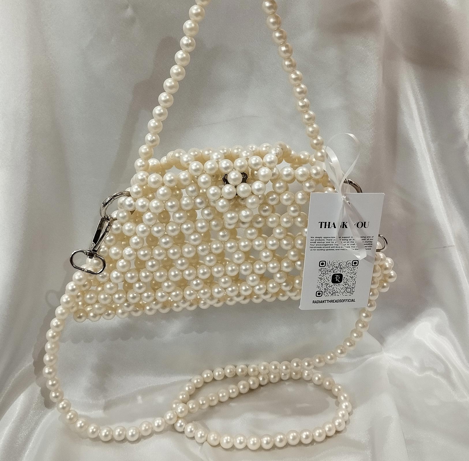 Elevate your style with the Tri Pearl, a handcrafted beaded bag that blends timeless elegance with contemporary design. Carefully constructed in a unique triangular silhouette, this statement accessory is adorned with premium faux pearls that shimmer with every movement.